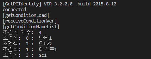 print("getConditionNameList(): 사용자 조건식이 없습니다.")